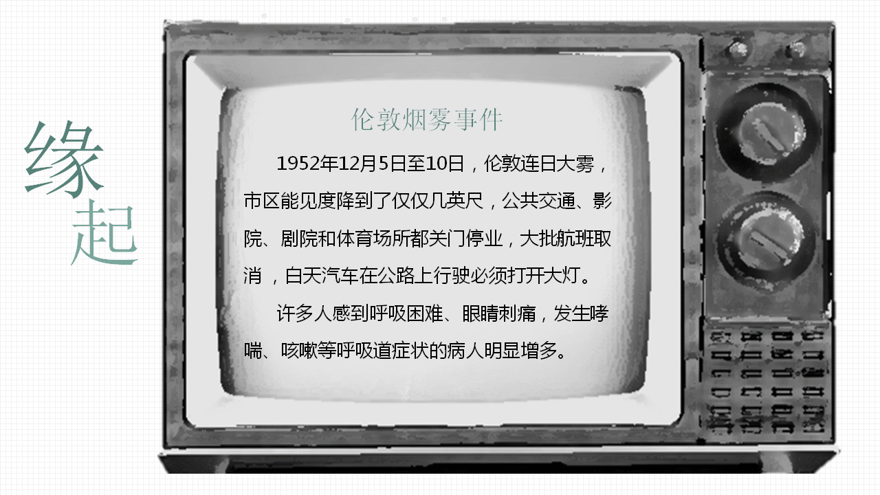 英国首都伦敦地处泰晤士河口,长年受西风和北大西洋暖流交汇的影响,因此气候潮湿,加之地处盆地,昼夜温差较大,空气流动不畅,容易形成大雾天气,并且循环往复,经久不散,成为伦敦一道独有的风景,也使“雾都”伦敦闻名于世。但是第一次工业革命之后,英国的工业高速开展,泰晤士河两岸工厂密布,以煤炭为主要燃料的蒸汽机大量投入使用;而且由于当时技术水平有限,煤炭燃烧率低,工厂排放的大量废气与大雾混在一起,笼罩在城市上空,原本白色的雾气变成了一片灰霾。自此,“雾都”成了空气污染的代名词。1952年12月5-10日,这些聚集已久的雾霾最终酿成史上著名的“伦敦烟雾事件”。下面借用一个短片来分析一下这次事件的始末。