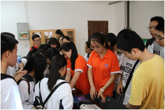 志愿者和科研工作者们全程无休地为参观者循环讲解,耐心答疑,顺利获得对各个实验室的实地参观,结合室内空气污染特征展示、海报宣传、在线监测仪器讲解;光催化产品展示、光催化实验去除大气、水中污染物的奇妙小实验等环节,使公众对气体及颗粒物的监测、分析、控制手段等方面均有了深入认识。有同学感叹说:“噢!原来每天手机上显示的PM2.5污染指数都是从这些仪器里测出来的啊!”,更有同学在观摩光催化技术对大气污染物的去除的实验时两眼放光,意犹未尽。经过此次科普活动的举办,让公众真正亲身体会科研的奥秘,培养中学生们一种科研精神,很好地让公众认识并理解科研工作,更为科研产品与现代都市生活结合进行了一次很好的科普。本次科普活动已划上圆满的句号,但科普仍然在路上,着力提高科普工作成效,我们不断在努力。